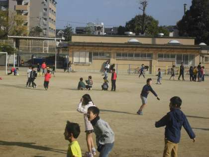 子どもたちは4時間授業で13:30下校ですが,完全下校ではないのでたくさんの子どもたちが運動場で元気に遊んでいます。