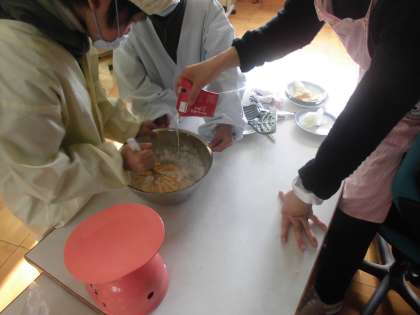 1.ホットケーキの素に牛乳と卵を入れてまぜる。