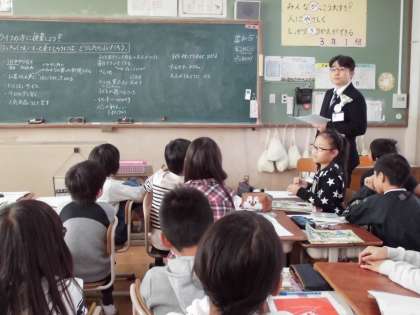 「商店のはたらき」の発展学習として,ライフセントラルスクエアの小林さんに来ていただき,お話を聞きました。子どもたちが社会見学で学んだことをまとめた新聞を読んでくださっていたので,読んだ感想を伝えてくださいました。