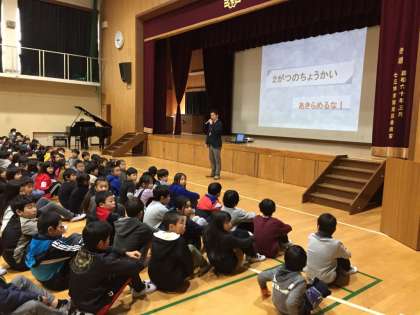 さて,昨日は「2月の朝会」を行いましたが,校長先生が出張で不在のため,教頭先生のお話でした。