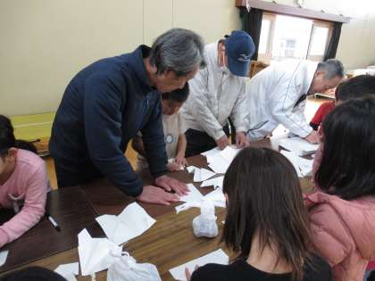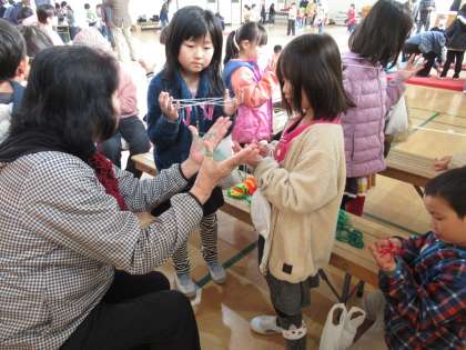2月7日に地域のシルバークラブ寿連合会の方々にお世話になって,体育館で昔あそびを楽しみました。お手玉・こままわし・けん玉・紙ひこうき・折り紙・あやとりの6つのコーナーを順にまわって楽しみました。この日,シルバークラブの方が35名ほど来てくださり,それぞれのコーナーで優しく教えてくださいました。本当にありがとうございました。