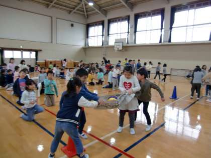 集会の後には,楽しいゲームをしました。子どもたちみんな,お互いに応援したり,協力し合ったりして楽しむ姿が見られました。