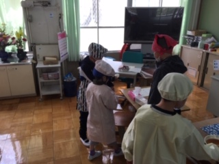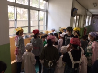 今年度初の給食。1年生にとっては小学校初の給食でした。