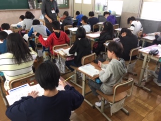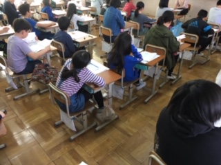 国語・算数を45分行い,最後に児童質問紙に答えました。