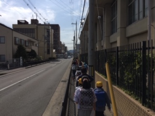 町ごとにみんなで一緒に集団下校をしました。