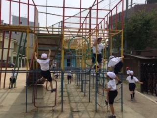 1年生は遊具遊びでした。