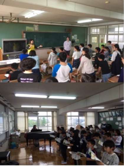 今日は,音楽のスクールサポータの先生とALTの先生が
