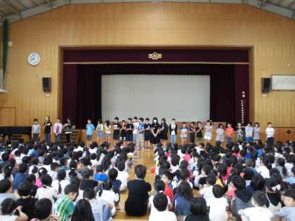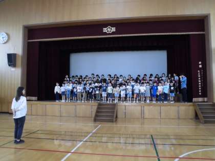 今日の1時間目に,体育館に集まって児童集会を行いました。