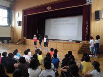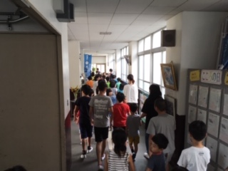 まず,たてわりグループの教室に集まり,リーダーがみんなを