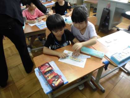 先生の話をしっかり聞き,数図ブロックを操作していました。