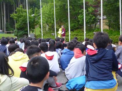 雨降りウィークの山の家ですが,今日はさわやかな風が吹き,雲の切れ間に青空も見える好天気です。この後の活動も,きもちよくできるのではないかと期待しています。