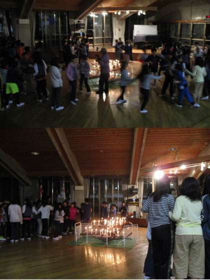 さっき,野外炊事で歌っていた「燃えろよ燃えろ」を