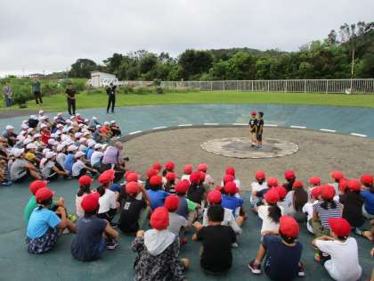 校歌を歌い,学校紹介を行い,お互いの学校の交流をしました。