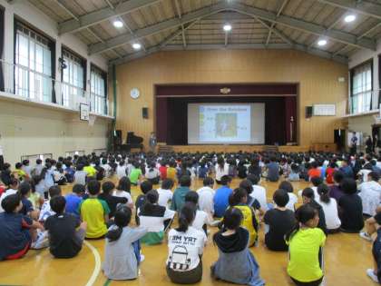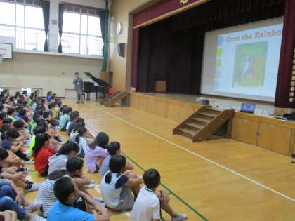いつも下の学年を支えてくれる6年生が,みんなの後ろから