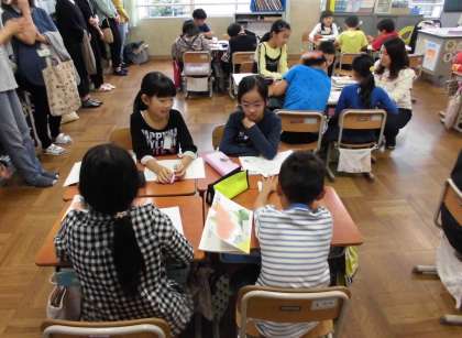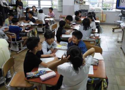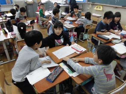 金曜日の参観日は,国語科の「ちいちゃんのかげおくり」の学習に取り組みました。まず,第一場面と第四場面のかげおくりの同じ所とちがう所を話し合うグループに分かれ,それぞれの意見をもちました。その後,同じ所グループとちがう所グループが2人ずつ集まった新しいグルーフ゜を作って,最初のグループで話し合った考えを交流しました。最後に,全体で同じ所とちがう所について話し合いました。自分の意見や考えを伝えられる力を育てていきたいと考えています。