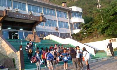 岡山の宿舎に到着!とても美しい景色にうっとりです。宿舎での楽しい活動はこれからです。まだまだ楽しみがいっぱいの子どもたちです。よい思い出ができるといいですね。この後は夕食,買い物,お楽しみ会と続きます。