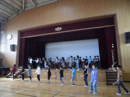七三夢舞台に向けて,踊りや台詞,歌をがんばっています。先週までは教室で踊り,台詞の練習をしていましたが,今週からは体育館で練習を行っています。台詞はゆっくり,はっきり言うことを心がけて練習することができました。本番まであと2週間。踊り,台詞,歌をすばらしいものにできるようにがんばっていきます。