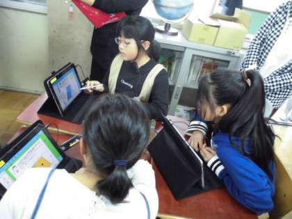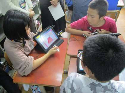 算数科「面積」の学習では,話し合いでの協働学習を通して,学び合いが深まるように取り組んでいます。「台形」の面積はどうすれば求められるかについて,みんなで活発に話し合うことができました。