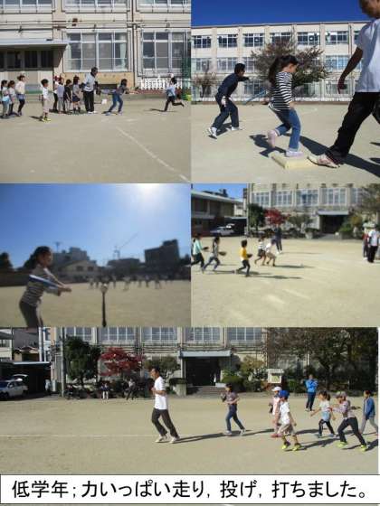 前半の低学年は,ボールに向かって力いっぱい走ったり,