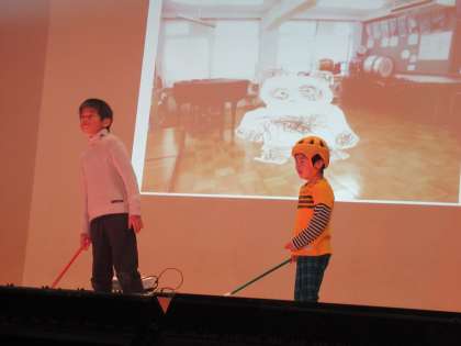 七三夢舞台でさくら学級は「まほうのえんぴつ」の劇をしました。描いたものが本物になる魔法のえんぴつ。色々困ったことが起こりましたが,さくらの子ども達3人で力を合わせてがんばりました。最後は子ども達の描いた森のたくさんの動物達が集まってきました。ナレーターやそれぞれの役で大きな声で,しっかりがんばってセリフが言えました。劇の最後は子ども達の大好きな「パプリカ」の曲に合わせて踊りました。最後の決めポーズもバッチリでした。とてもがんばり楽しかったようで教室に帰ってからも歌ったり踊ったりご機嫌でした。