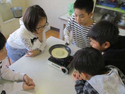 と,焼ける様子を見ながら楽しそうに話し合っていました。