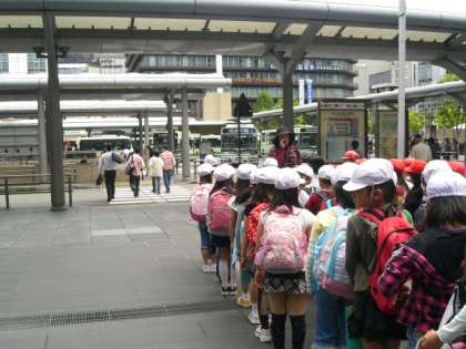 京都駅に着き,バスターミナルに行って,行き先ごとに乗り場が分かれていることや,