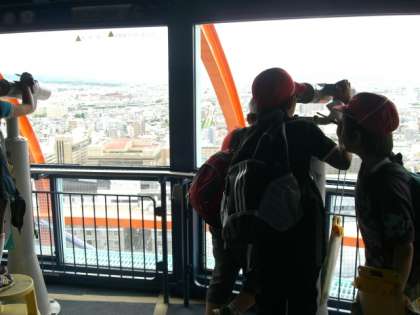 山などを見つけました。とても高い場所からだったので,望遠鏡も使いながら一生懸命見つけていきました。京都タワーから見る京都の町並みは,きっと子どもたちの心に残ったと思います。