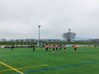 1月12日(日)に吉祥院グラウンドで,タグラグビーの交流会がありました。本校からは,2チームの参加でしたが,「ナイストライ!」「もっと広がって!」などお互いのチームで応援し合っているようすがありました。試合中も夢中でボールを追いかけて,寒い日でしたが,汗をかきながら懸命の取り組んでいました。試合の合間にも,パスやボールを投げる練習をしている様子もありました。ラグビーが注目される中,スポーツの楽しさを知って,いろいろなスポーツに親しんで欲しいと思います。