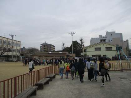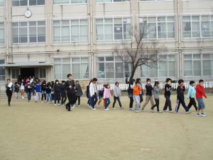 自分たちでどうすればいいか考え,運動場に避難,