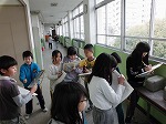 防火バケツや消火器,消火栓,火災報知器などを見つけ,子ども達はどこで火事が起こっても消火したり,連絡したりできるように考えられていることに気付きました。