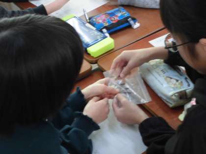 大豆がどのような食品にに変化するのかを栄養教諭の松崎先生と学習しました。私たちの身の回りには大豆が使われている食品がたくさんあります。味の変化や,長く保存できる良さなどについて理解を深めました。これからも大豆を探しながら食事を楽しんでほしいと思います。
