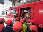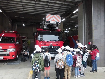 社会科「火事をふせぐ」の学習で,下京消防署に見学に行きました。火事が起きた時にすばやく出動するための工夫や,消防署の仕組みについて教えてもらいました。実際に放水される様子も見ることができ,その迫力に驚きの声があがっていました。地域の火事を防ぐためにどれだけ準備されているのかたくさん知ることができました。
