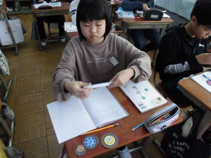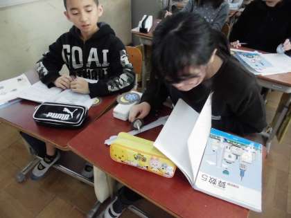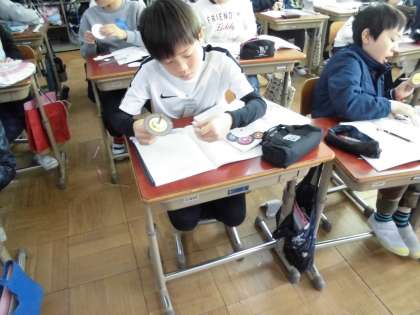 「円と正多角形」の学習では,直径と円周にどんな関係があるのかについて調べました。様々な大きさの円形を使って,転がしながら円周を測ってみました。そして,「円周率」というものがあるということを知り,実際に円周率を使って,直径から円周を求めてみました。