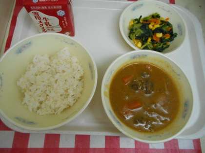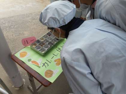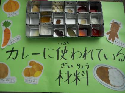1月23日(木)の給食は,麦ごはん・カレー・小松菜のソテーでした。カレーに入っているしょう油やトマトピューレ・チーズ・ヨーグルトなど17種類の調味料の展示を行いました。カレーに使われている調味料の多さに,驚いている児童が多くいました。「ヨーグルトも入っているの?」と見たり,「ローリエっていい匂いがするな」と香りをかいだりして,じっくりと観察している様子でした。どのクラスもおいしく食べてくれている様子で,全校で完食でした。心のこもった手作りの給食で,心も体も温まってほしいです。
