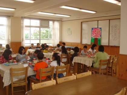 本校では,お誕生日の人をお祝いするお誕生日給食が毎月行われます。その月のお誕生日の人がランチルームに集まり,みんなでお祝いをします。ランチルームで食べる給食は格別です。誕生日月とあって,うれしい給食になったことでしょう。