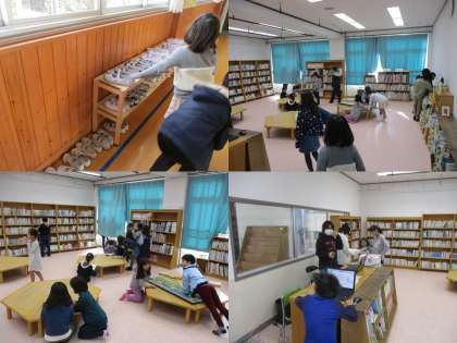くつもきちんときれいに並べ,一目散に図書室へ。