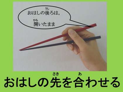 3.2ほんの おはしの さきを かちかち あわせる(うしろが ばつに ならない ように)