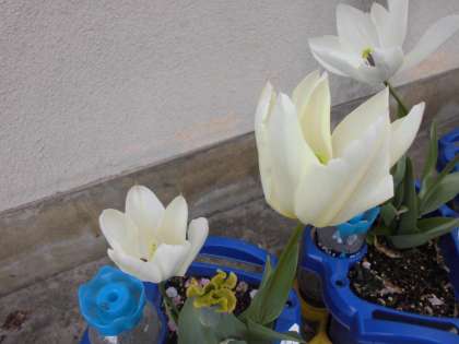 みんなが 1ねんせいの ときに うえた チューリップが,うつくしく 花をさかせて いますよ。 せんしゅう までは あか や しろ の いろの 花が さいて いましたが, こんしゅうは きいろ の 花が さいています。ふしぎだね。