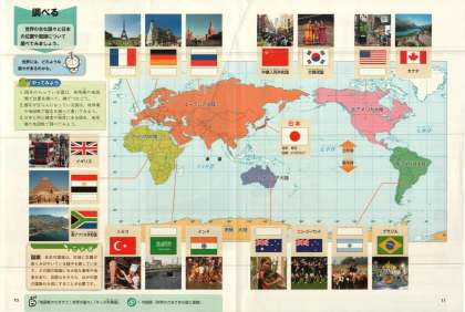 世界地図の中で,どの大陸に何という国があるのかを,教科書と