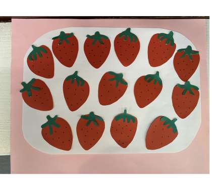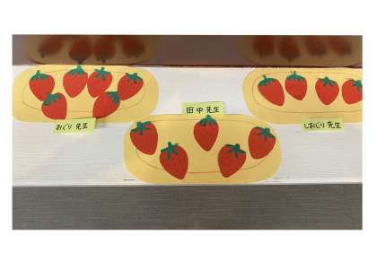 きのう,しおじり先生のおうちに,おばあちゃんから15このいちごが とどきました。