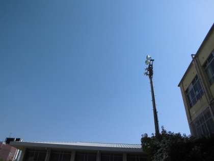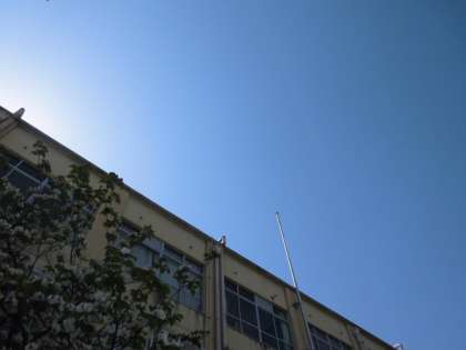 写真は,今日4月30日の午後3時前の学校の上空の様子です。雲一つない晴天ですね。4月の最後の日ではありますが,「五月晴れ」ですね。理科の雲の観察の学習としてだけではなく,今の気持ちのよい季節を感じてほしいです。