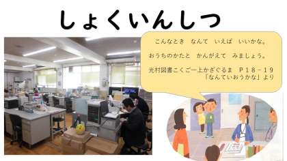 しょくいんしつは きょうしょくいんが しごとを するへやです。