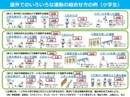 4年生のみなさん,休校が延長になり,家の中で過ごすことがさらに増えると思います。家の中では,ストレッチなどに取り組んでみてください。体や心がすっきりすると思います。また,家のまわりでできる簡単な運動も紹介しますので,適度に体を動かしてさらに,リフレッシュしてくださいね。