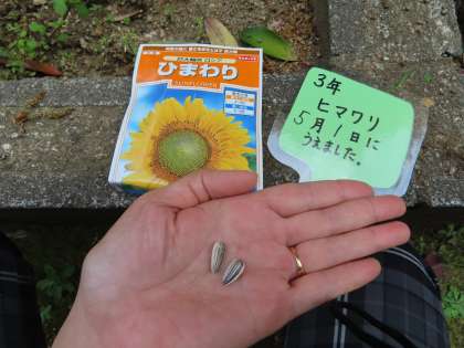 今日5月1日に,学校の花壇とプランターにひまわりとホウセンカの種を植えました。