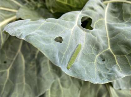 久しぶりにキャベツの葉を見に行くと,なんとあの小さかった青虫が大きくなっていました。