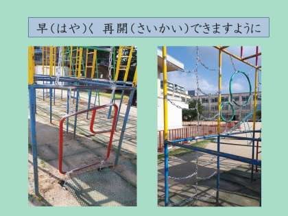 遊具(ゆうぐ)を,より安全(あんぜん)にする工事(こうじ)も,終(お)わりました。