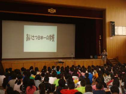 6月7日(火)に朝会がありました。並び方がとても上手になってきました。校長先生からは,学校大好き,勉強大好きになるための方法についてのお話がありました。そのあと,「やってみよう!6つの約束」の話がありました。そして,「あいさつ日本一の学校」にしようと締めくくり,朝会が終わりました。一人一人が意識して,ほんの少し努力するだけで,学校が変わります。「あいさつ日本一」の学校目指して頑張っていきたいですね。
