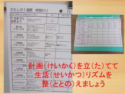 子どもたちが学校生活の一日を意識しやすいように,このような形式の「学習計画表」も同封しています。