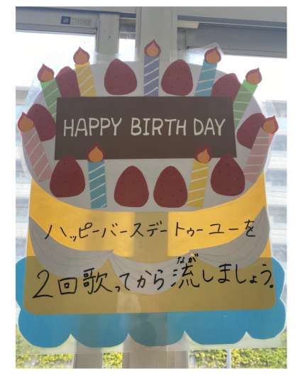 手あらいのときは,「ハッピーバースデー」のうたを2回うたって,手のよごれをきれいにしましょうね!!