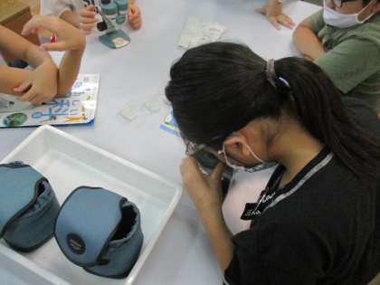 5年生は,理科室でメダカの観察。